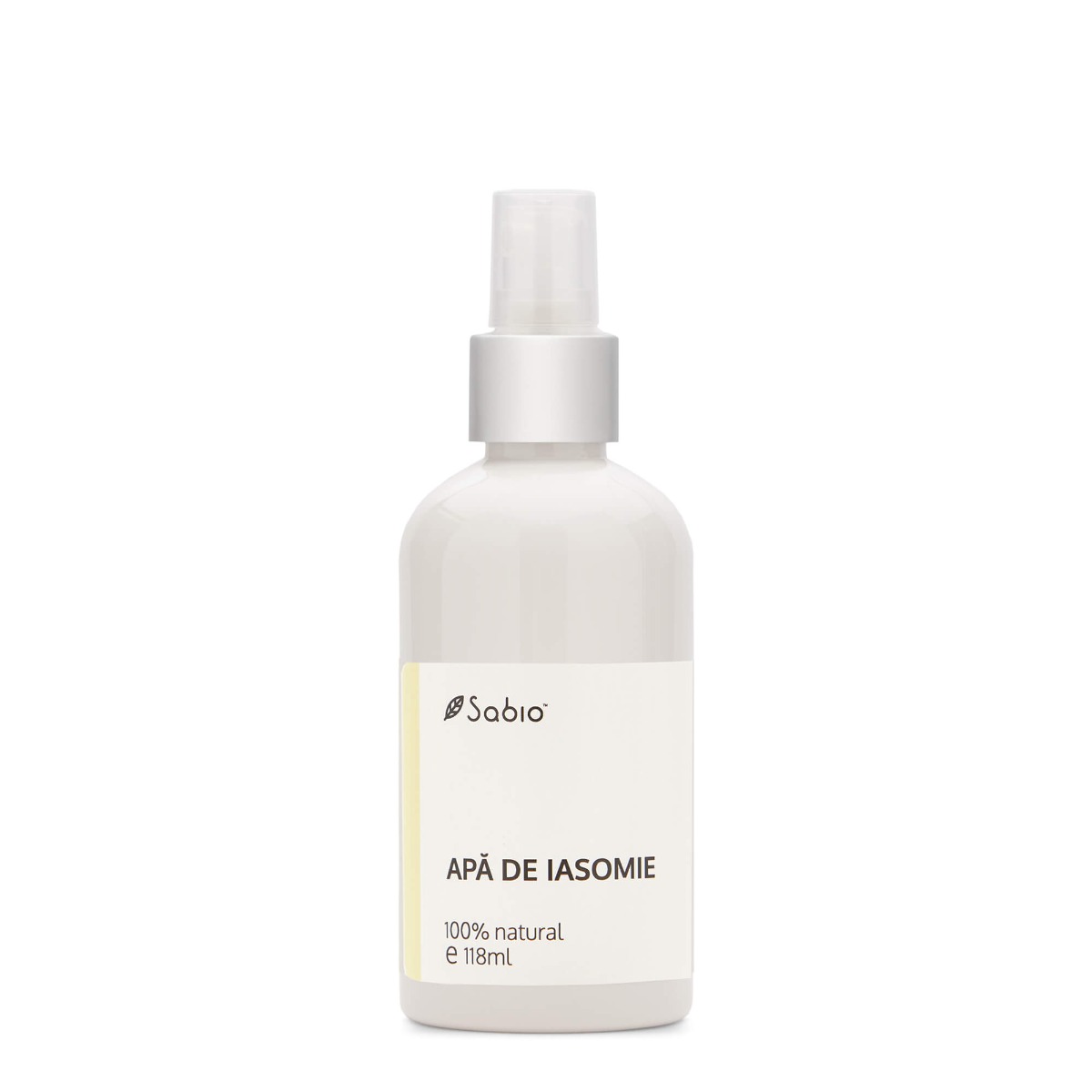 Apa florala pura obtinuta prin distilarea petalelor de iasomie, cu efect calmant si regenerant asupra pielii sensibile sau uscate, ideala pentru hidratare si relaxare, Sabio.
