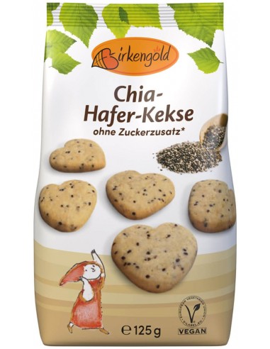 Biscuiti din ovaz cu chia indulciti cu xylitol, 125g, Birkengold