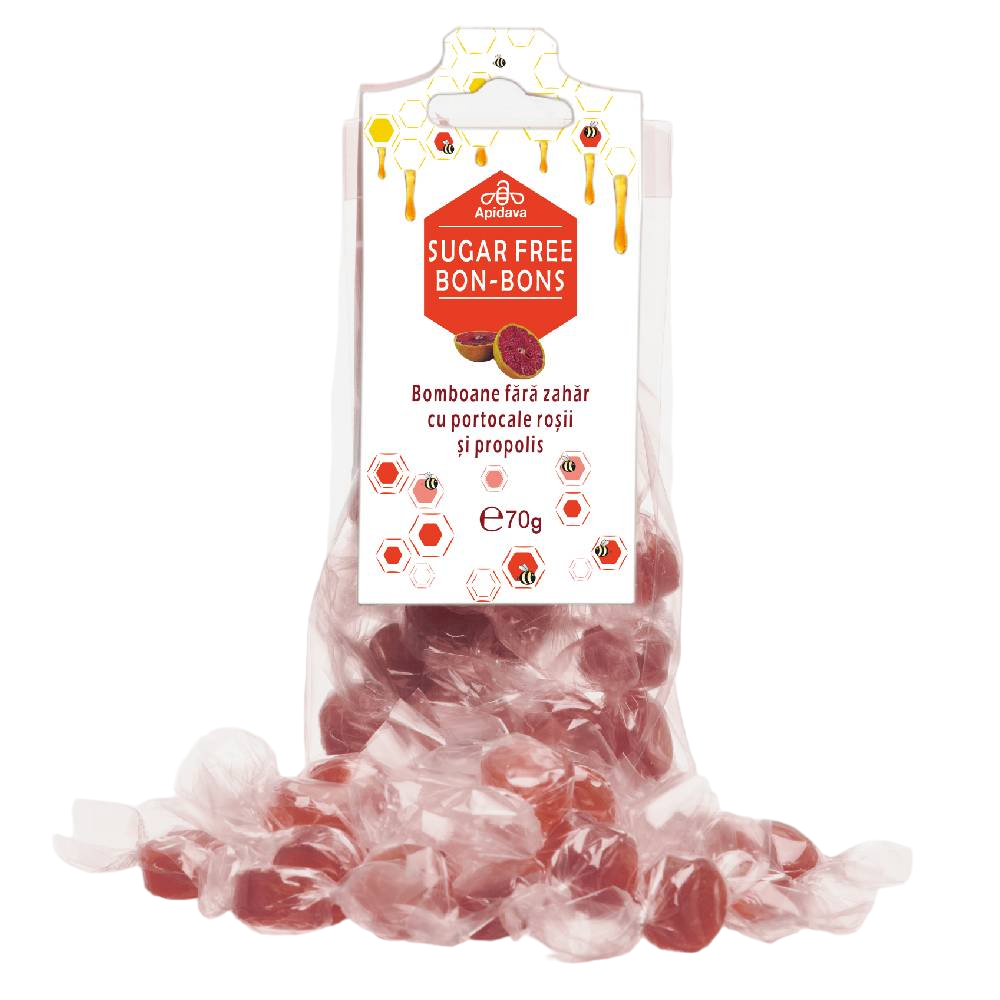Bomboane fara zahar cu propolis si portocale rosii, 70g, Apidava