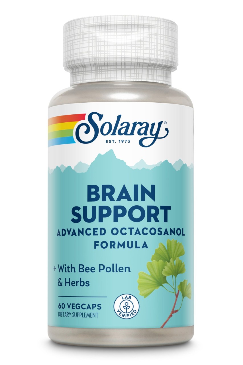 Brain Support Solaray 60 capsule vegetale Descriere generala Brain Support de la Solaray este un supliment alimentar complex formulat pentru susținerea sanatatii psihice si a functiei cognitive. Ingredientele active din compozitie actioneaza sinergic pentru a sustine oxigenarea cerebrală, memoria, atentia si echilibrul emotional in perioadele de stres sau solicitare mentala crescuta. Beneficii Sustine performanta cognitiva si functia de memorare Contribuie la circulatia normala a sangelui la nivel cerebral si periferic Favorizeaza adaptarea la stres si sustine echilibrul mental Ajuta la reducerea oboselii si extenuarii Sustine functionarea normala a sistemului nervos si psihic Contribuie la imbunatatirea vitalitatii si a starii generale Compozitie per 2 capsule Polen de albine – 400 mg Magneziu (oxid) – 175 mg Ginseng siberian (Eleutherococcus senticosus, radacina) – 275 mg Ginkgo biloba (extract din frunza) – 100 mg Ghimbir (Zingiber officinale, radacina) – 50 mg Lecitina (din floarea-soarelui) – 50 mg Vitamina B6 (clorhidrat de piridoxina) – 20 mg Octacosanol (din germeni de grau) – 4000 mcg Mod de administrare 2 capsule pe zi, la masa, cu 200 ml de apa sau conform recomandarii consultantului de specialitate. Se recomanda utilizarea continua timp de 4-6 saptamani pentru rezultate optime. Atentie Produsul contine ingrediente din surse naturale, iar proprietatile organoleptice pot varia de la un lot la altul, fara a afecta eficienta si siguranta acestuia. Fiecare lot este testat riguros pentru calitate, puritate si biodisponibilitate. Contraindicatii Nu se recomanda copiilor sub 1 an, persoanelor cu intoleranta la gluten sau grau. Consultarea medicului este necesara pentru copiii peste 1 an, femeile insarcinate, cele care alapteaza, persoanele alergice la produse apicole sau la oricare dintre ingrediente, precum si celor diagnosticate cu litiaza biliara.
