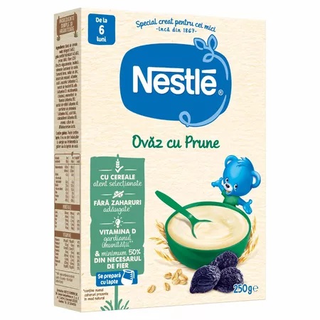 Profită reduceri și preț mic la  Cereale din ovaz cu prune Infant Cereals +6 luni, 250g, Nestle, numai la Dr. Max.