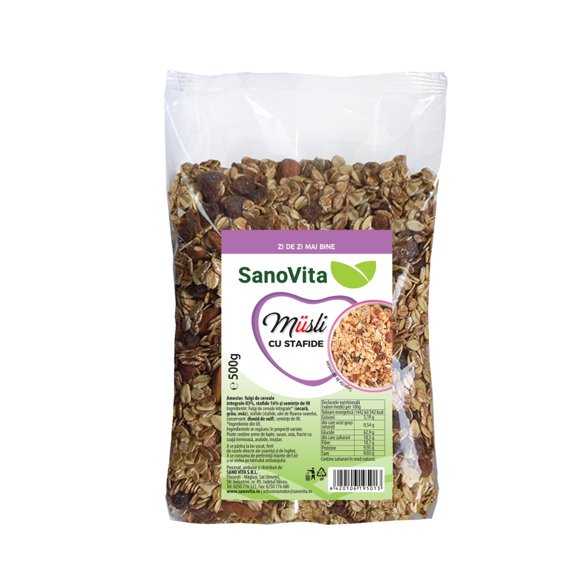 Complex fulgi de cereale cu stafide, 500g, SanoVita
