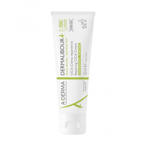 Crema anti-iritatii Dermalibour, 50 ml, A-Derma Proprietati: – crema reparatoare pentru pielea iritata (roseata, senzatie de strangere, mancarime si descuamare) si agresata, ideala pentru: iritatii din jurul gurii, zone uscate, iritatii de scutec, iritatii ale mainilor, etc; – asigura ingrijirea, repararea si purificarea pielii iritate: dermatite iritative fara exsudat (periorala, urticarii, eritem fesier, eczema de contact etc.); – nu contine parfum sau onservanti; – este neocluziva, incolora; – pentru fata, corp si mucoase externe; – repara pielea dupa 4 zile de utilizare; – purifica zona iritata si reduce proliferarea bacteriana (complex Cupru si Zinc); – pentru nou-nascuti, copii, adulti si varstnici. Ingrediente active: Ulei de Ovaz Rhealba, extract de Ovaz Rhealba, sulfat de cupru, sulfat de zinc, oxid de zinc. Mod de utilizare: Aplicati de 1-2 ori pe zi, pe zona afectata. Przentare: 50 ml