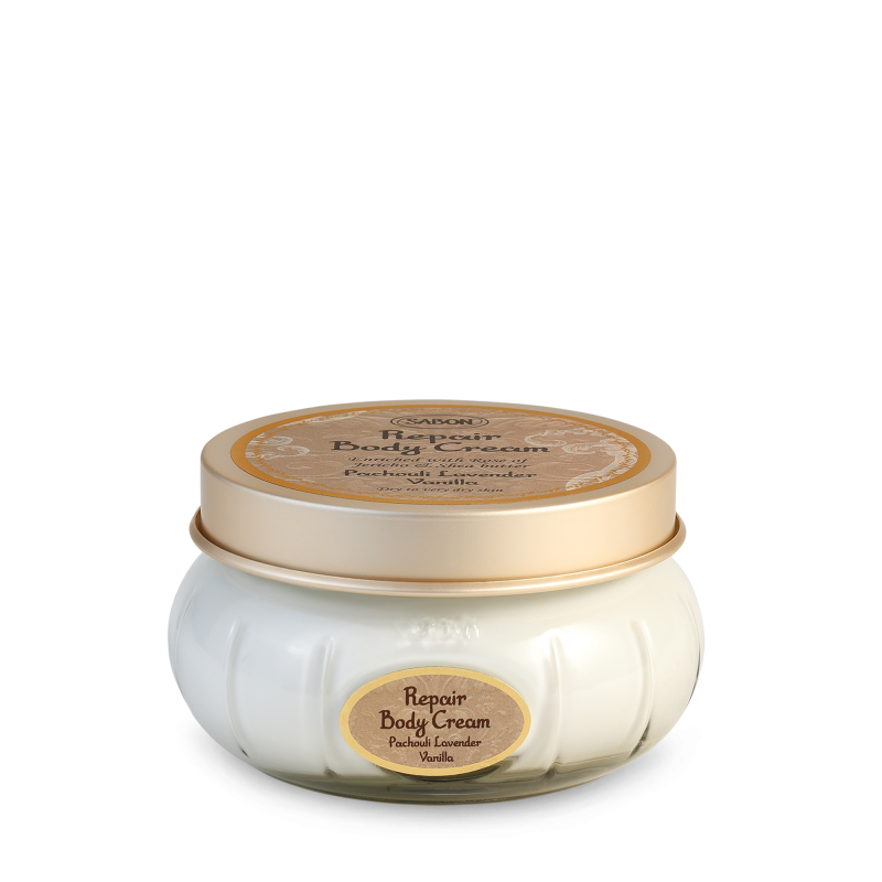Crema de corp Sabon Patchouli Lavender Vanilla, cu unt de karite si uleiuri vegetale, hraneste intens pielea uscata, o regenereaza si ii reda supletea.