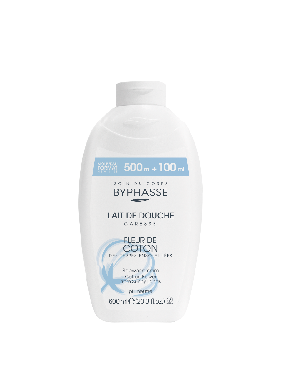 Crema de dus Byphasse Caresse cu extract de flori de bumbac curata delicat, hidrateaza si catifeleaza pielea, oferind o senzatie placuta de prospetime si confort dupa fiecare utilizare.