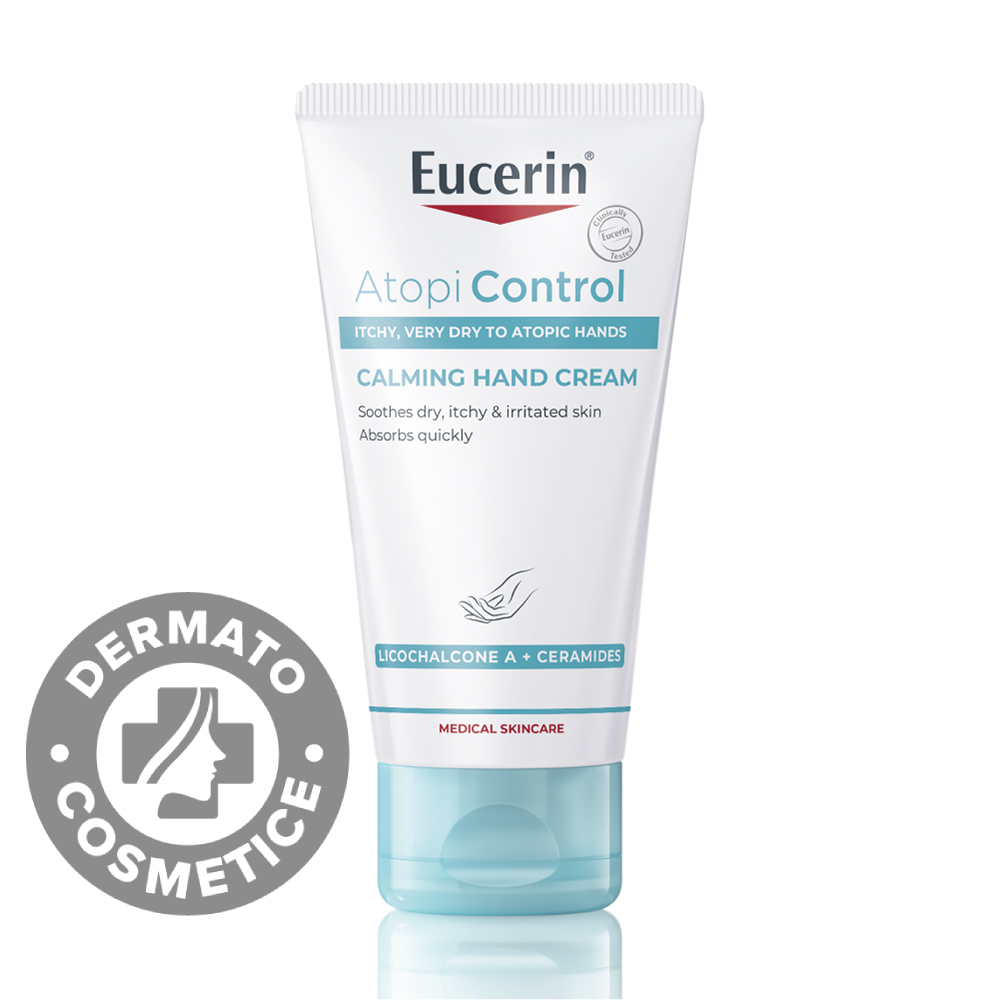 Crema de maini calmanta Eucerin AtopiControl netezeste si calmeaza pielea.