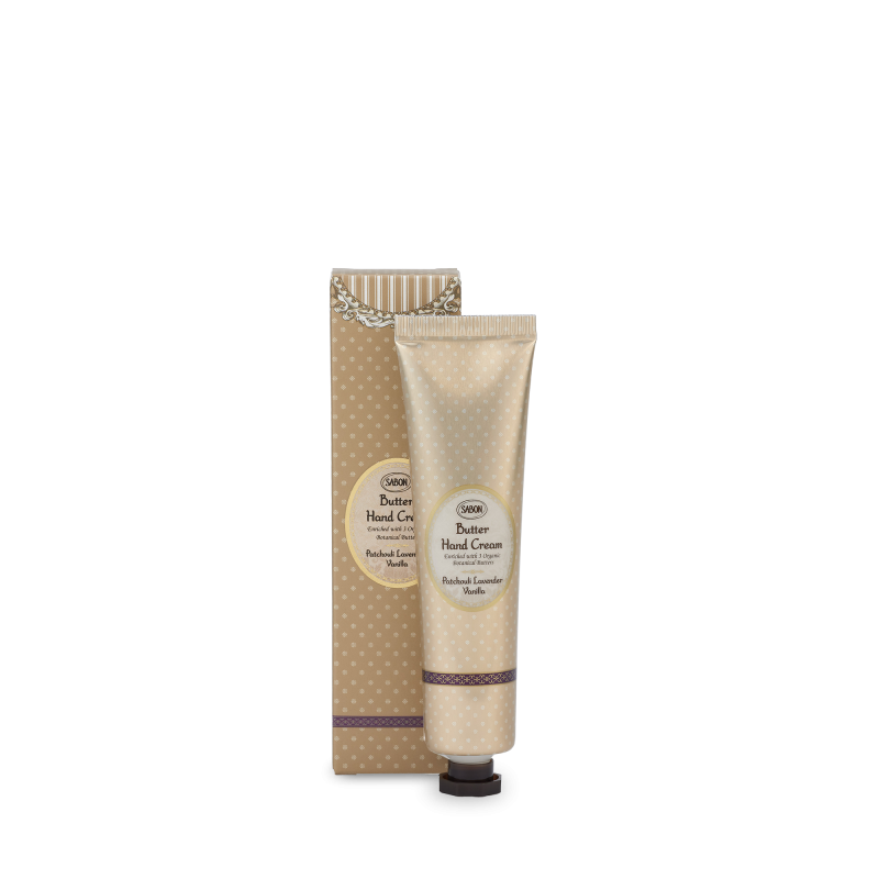 Crema de maini Sabon Patchouli Lavender Vanilla, cu unturi vegetale si ulei de fructul pasiunii, hidrateaza intens si lasa pielea catifelata.