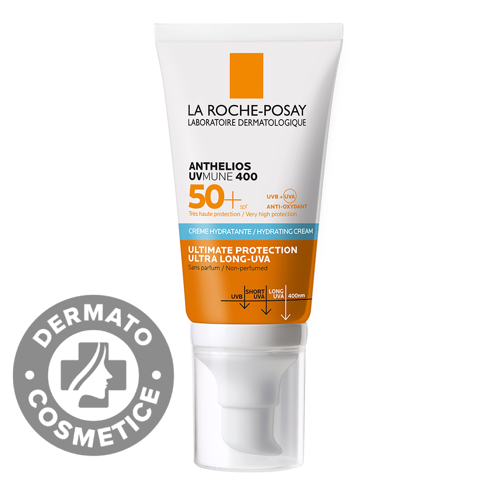 Anthelios UV-Mune 400 crema hidratanta SPF50+: Cu mexoryl 400, filtru UV ce protejeaza impotriva celor mai inselatoare radiatii UV.