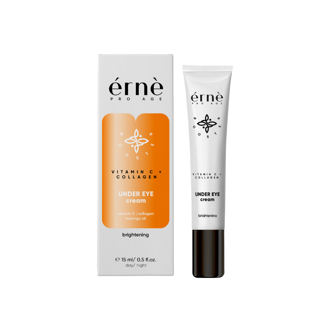 Crema iluminatoare pentru ochi cu Vitamina C si Colagen, Erne reduce semnele de oboseala, minimizeaza ridurile fine si confera luminozitate zonei delicate din jurul ochilor, pentru un aspect odihnit si intinerit.