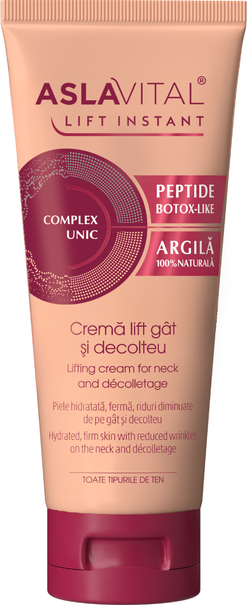 Crema lift pentru gat si decolte Lift Instant, 100ml, AslaVital ofera efect tensor, reduce ridurile si reda fermitatea pielii mature.