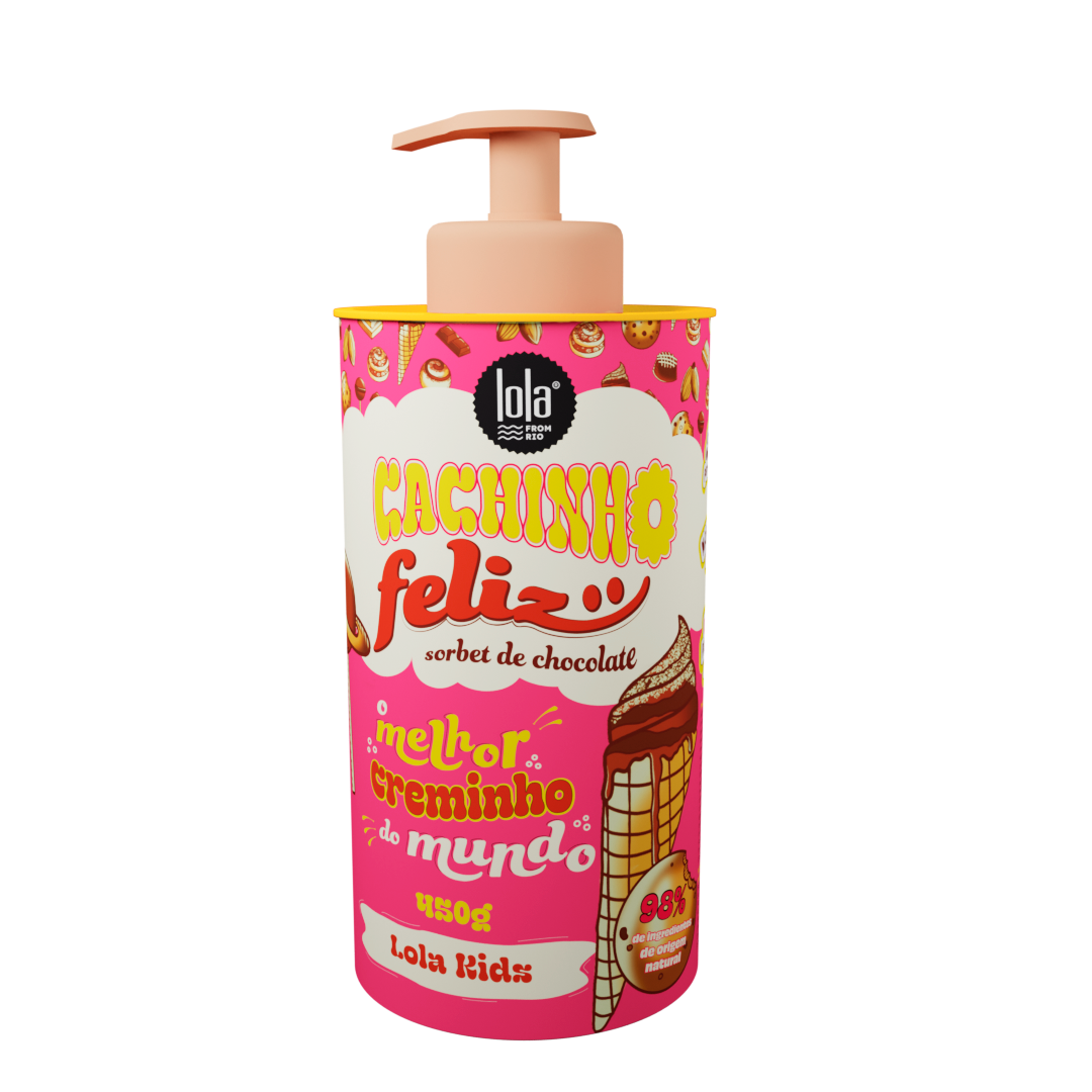 Crema pentru bucle copii cu aroma de ciocolata Cachinho Feliz Lola Cosmetics este creata pentru ingrijirea parului cret si afro al copiilor, oferind hidratare, definire si control al frizz-ului.