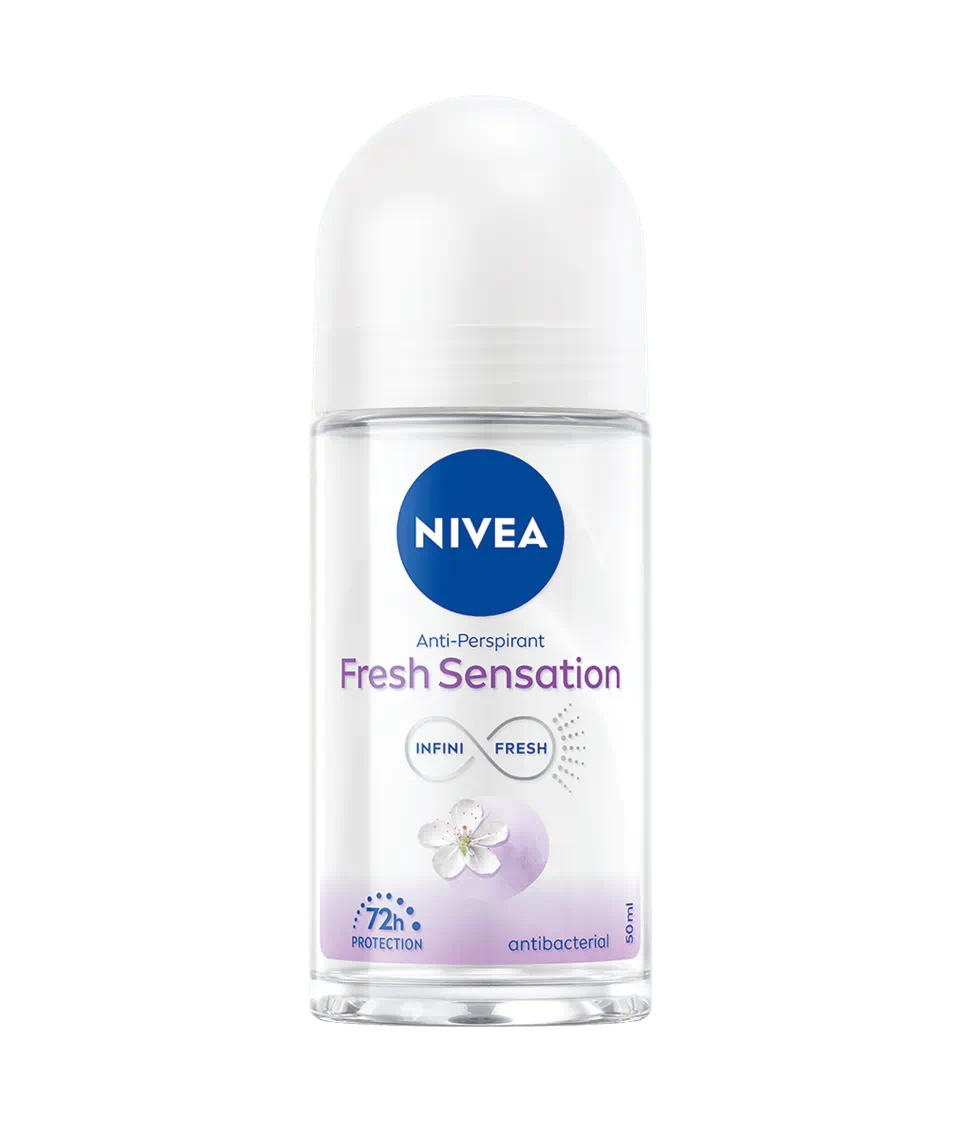 Nivea Fresh Sensation roll-on ofera 72h protectie, elimina bacteriile cu tehnologia Infinifresh si lasa pielea fresh cu parfum floral-fructat, fara iritatii.
