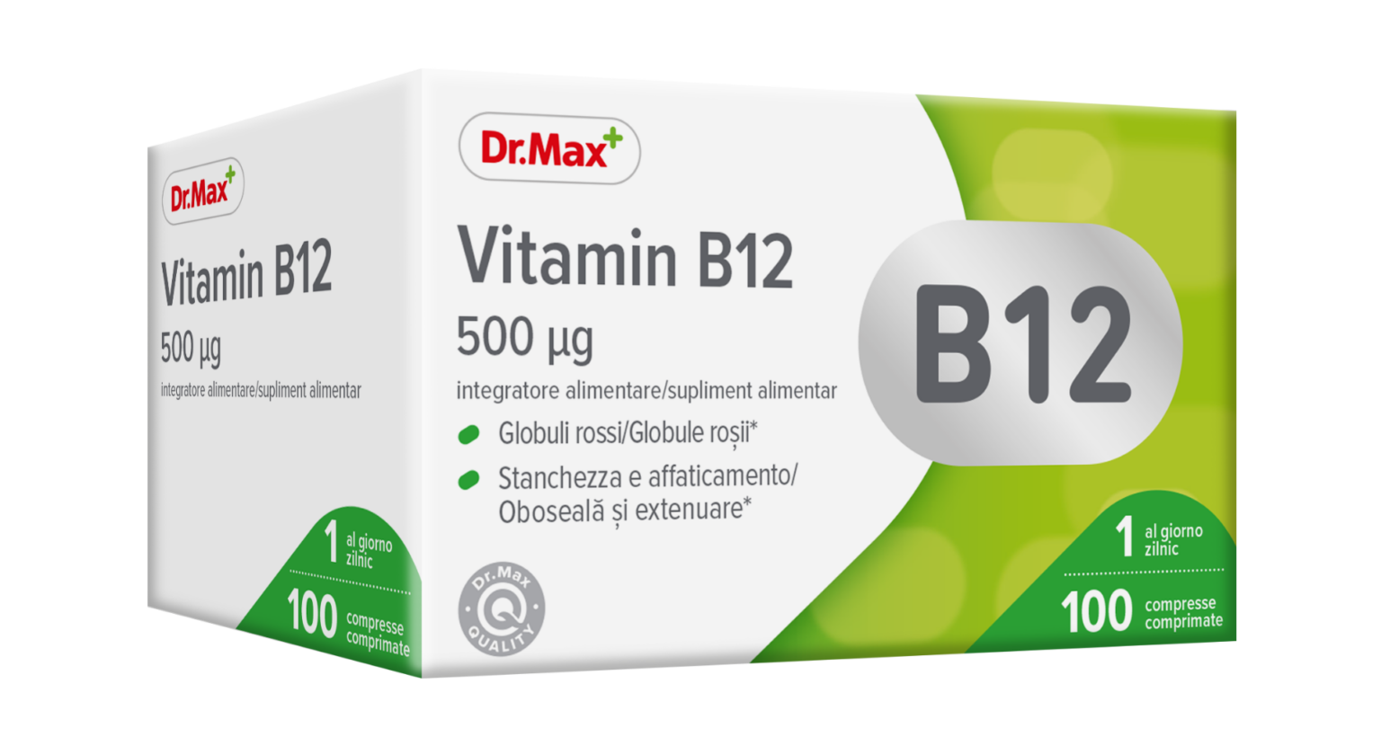 Profită reduceri și preț mic la  Dr. Max Vitamin B12 500mcg, 100 comprimate filmate, numai la Dr. Max.