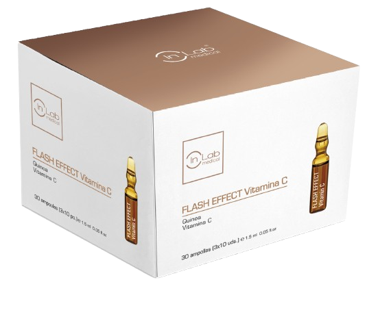 Fiole cu Vitamina C Flash Effect, InLab Medical – tratament cosmetic intens pe baza de extract din seminte de quinoa din Anzi si vitamina C stabila, cu efect de fermitate si luminozitate vizibil chiar dupa prima aplicare.