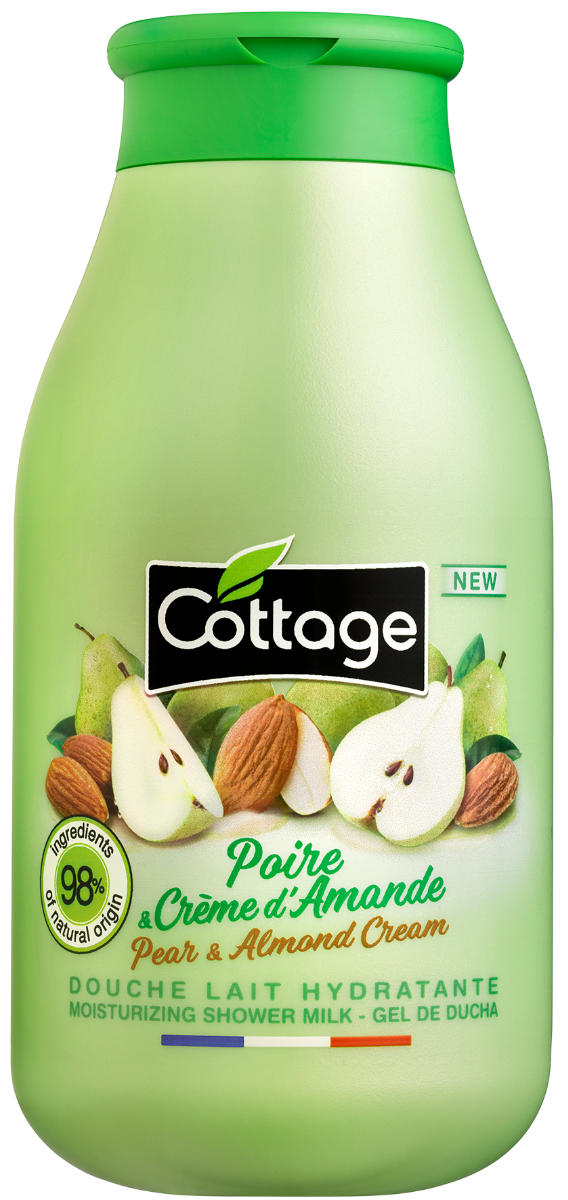 Gelul de dus Pere si Migdale Cottage curata delicat pielea, avand 98% ingrediente de origine naturala si un parfum fructat-cremos de para si migdale.
