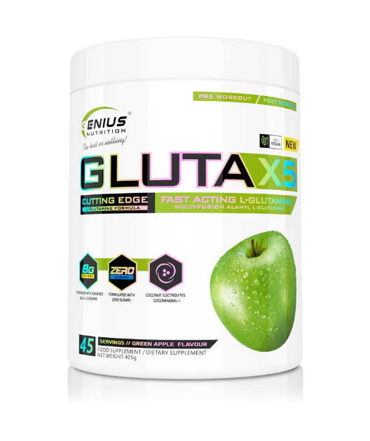 Profită reduceri și preț mic la Gluta-X5 cu aroma de mar verde, 405g, Genius Nutrition, numai la Dr. Max.