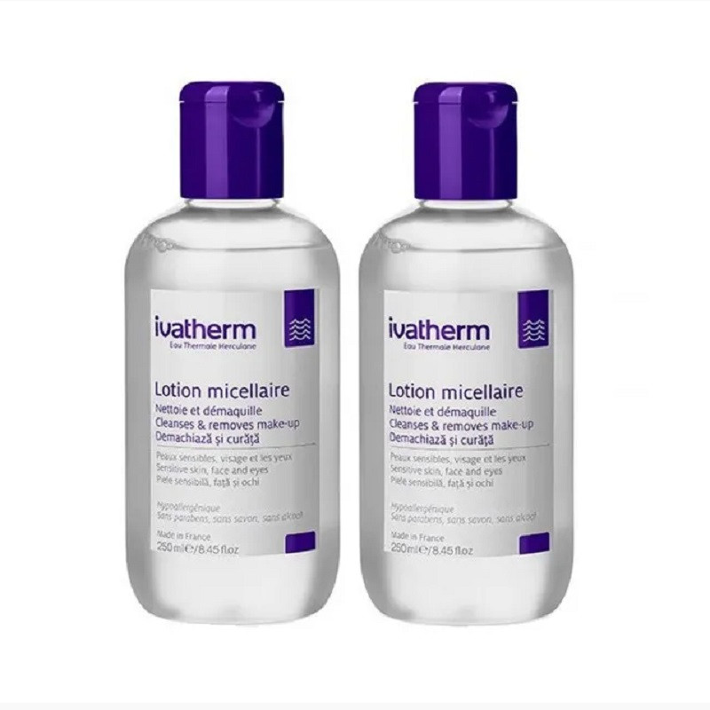 Ultraeficace, ultracalmanta, curata si demachiaza fata, ochii si buzele cu un singur gest: se imbiba cu solutie o discheta demachianta si se aplica pe piele cu miscari usoare. Inlocuieste cu succes demachiantul clasic, dar si lotiunea tonica. Nu necesita clatire. sterge chiar si machiajul rezistent la apa. Un demachiant formulat cu o tehnologie noua, Lotiunea Micelara este potivita oricarui tip de ten, chiar si celui sensibil sau cu dificultati majore: piele grasa cu probleme si imperfectiuni, dermatita seboreica, cuperoza, piele matura sau uscata. Demachierea fetei in sezonul cald cu Lotiunea Micelara Ivatherm iti lasa pielea curata, proaspata si delicata, pentru ca este filmogena, bacteriostatica si sebo-reglatoare. Contine un numar mic de ingrediente, cele mai importante fiind micelele, structuri moleculare de forma sferica ce asimileaza particulele de praf, sebum si resturi de machiaj, curatind delicat si in profunzime tenul, fara sa il usuce. Contine 30% apa termala Herculane, calmanta si antiiritanta. Are pH fiziologic, nu contine sapun, alcool sau coloranti. Se utilizeaza odata sau de doua ori pe zi, dimineata si seara. Lotiunea Micelara Ivatherm e produsul de ingrijire cosmetica de care nu te vei mai desparti.