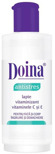 Laptele Doina Antistres este un produs care se adreseaza tuturor tipurilor de ten, fiind recomandat pentru demachierea, curatarea si vitaminizarea tenului, dar si pentru intretinerea corporala.