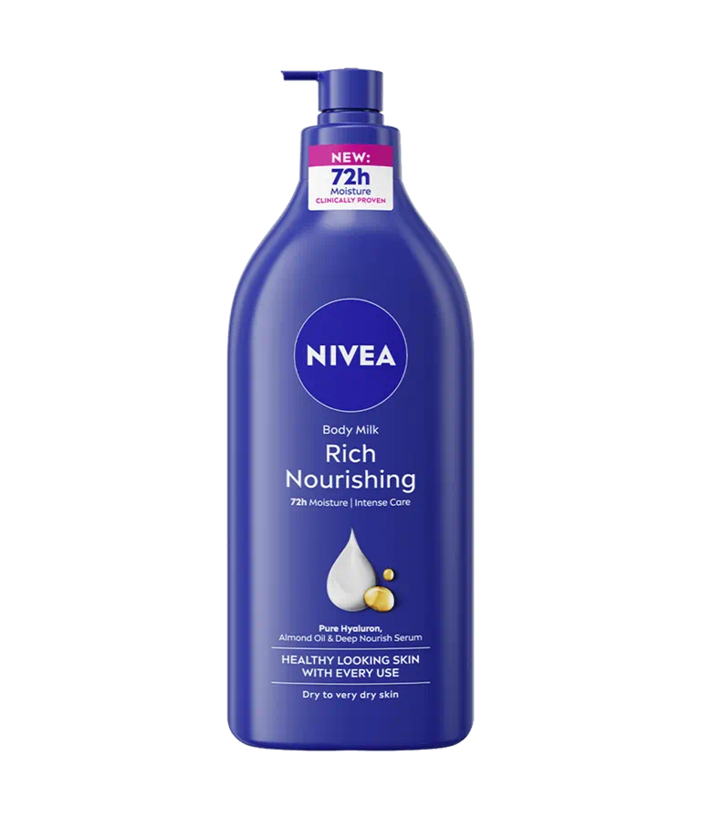 Laptele de corp Rich Nourishing Nivea hidrateaza intens pielea uscata si foarte uscata datorita acidului hialuronic, uleiului de migdale si serumului Deep Nourish.