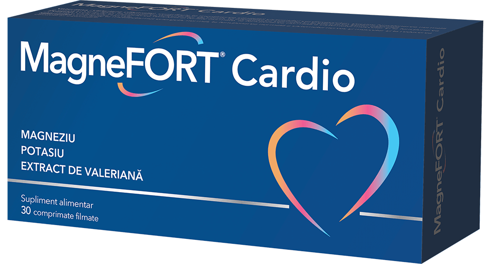 MagneFort Cardio, Biofarm, este un supliment alimentar cu magneziu, potasiu si valeriana, ce sustine sanatatea inimii, contribuie la mentinerea ritmului cardiac normal si ajuta la reglarea tensiunii arteriale.