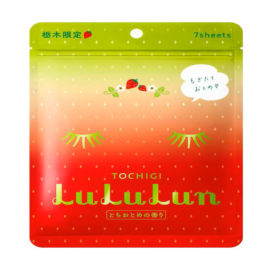 Masca de fata cu capsuni Tochigi, 7 bucati, LuLuLun este o masca premium tip servetel, imbogatita cu extract antioxidant si hidratant din seminte de capsuni, ideala pentru o piele neteda si luminoasa.