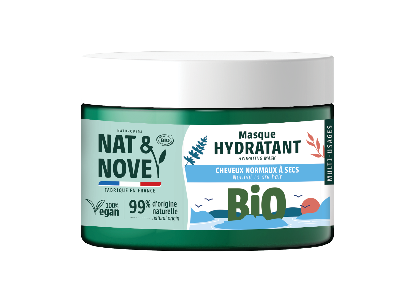 Masca bio 3in1 pentru par normal si uscat, cu extract de castravete bio, hidrateaza intens, catifeleaza parul si previne uscarea varfurilor, Nat&Nove.