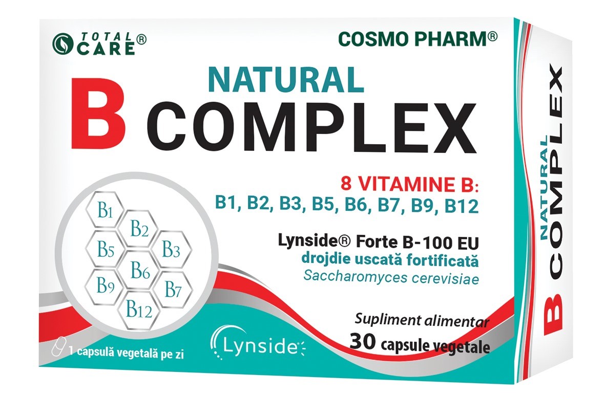 Natural B Complex este o formula completa si naturala, care ofera toate cele 8 vitamine esentiale din complexul B.