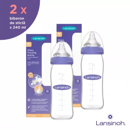 Pachet biberoane din sticla, 2 x 240 ml, Lansinoh