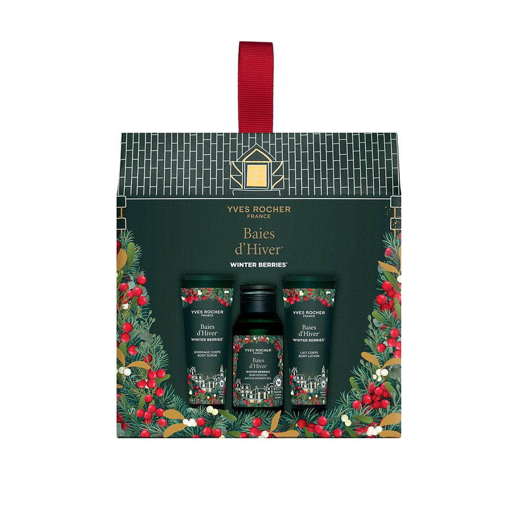 Pachet cadou in editie limitata cu gel de dus, lapte de corp si scrub de corp, cu parfum reconfortant de fructe rosii de iarna si accente de vanilie.