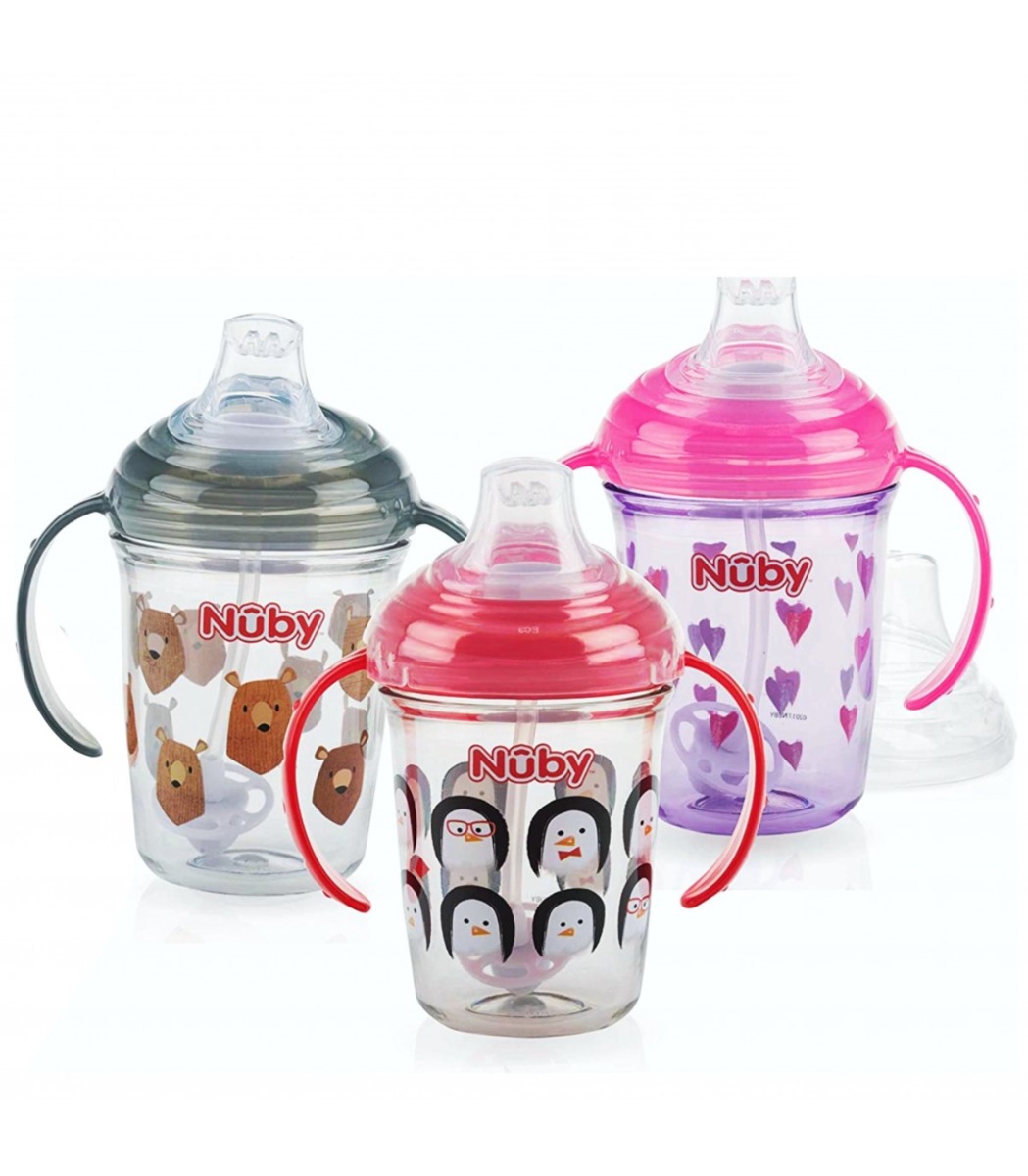 Profită reduceri și preț mic la Pahar Stop Picatura cu manere +6 luni, 240ml, Nuby, numai la Dr. Max.