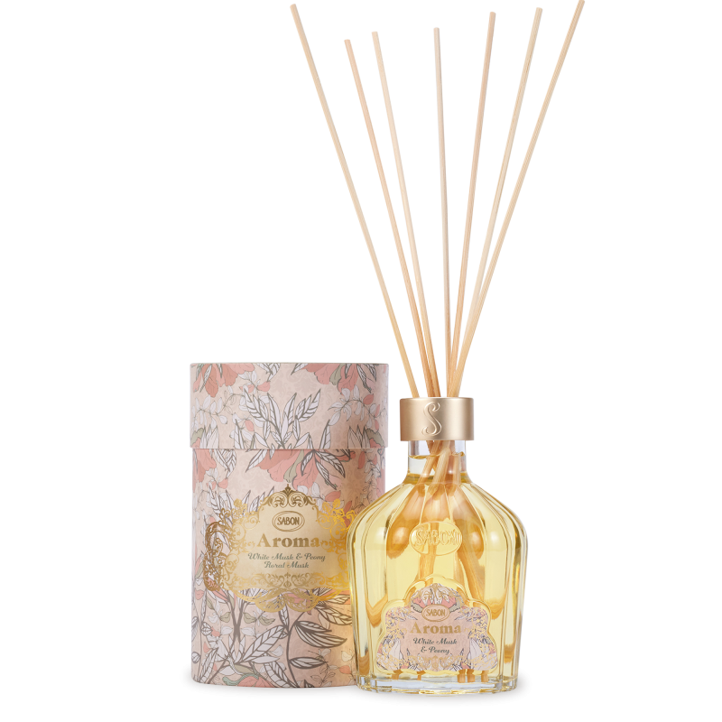 Parfum de camera White Musk & Bujor, Sabon, aroma florala si moscata ce creeaza o atmosfera eleganta, feminina si rafinata in orice interior.