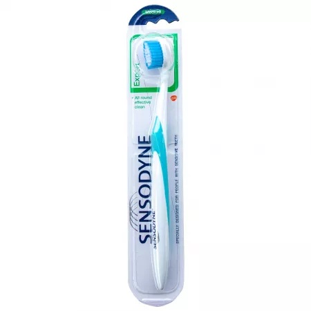 Periuta de dinti Sensodyne Expert are perii medii. Acestia sunt rotunjiti la capat pentru o curatare delicata si minutioasa a dintilor si gingiilor.