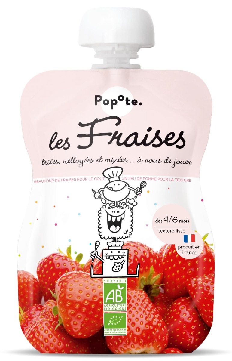 Piure bio Popote cu capsuni si mere, 100% organic, fara aditivi, cu textura fina, potrivit pentru diversificare de la 4 luni.