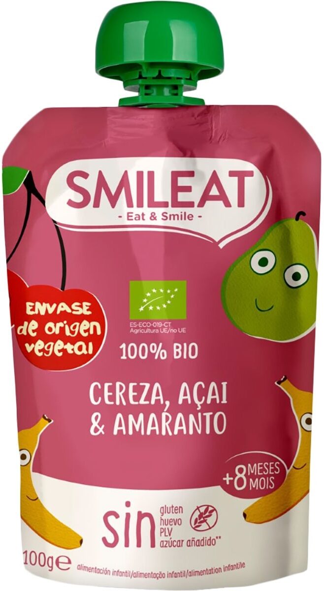 Gustarea piure bio din cirese, acai si amaranth, +8 luni de la Smileat este un produs de calitate inalta, special creat pentru bebelusi si contine ingrediente provenite din agricultura ecologica certificata.