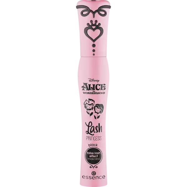 Mascara negru intens cu efect de gene false, volum, alungire si curbura, cu perie din fibre si design tematic Disney Alice in Wonderland.