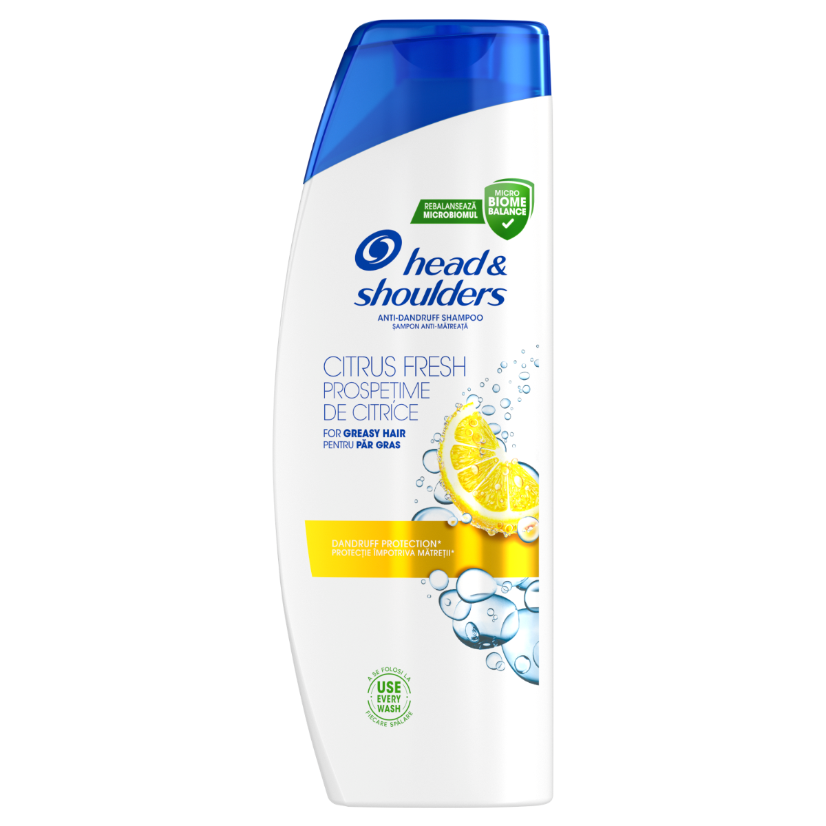 Samponul pentru par gras anti-matreata Citrus Fresh, Head&Shoulders, curata scalpul, combate matreata persistenta si ofera prospetime zilnica parului gras.