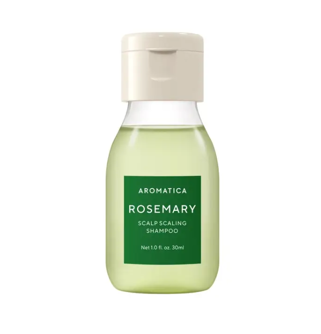 Samponul pentru scalp cu Rozmarin varianta mini, 30ml, Aromatica curata delicat, stimuleaza microcirculatia si improspateaza scalpul, fiind ideal pentru calatorii sau testare.