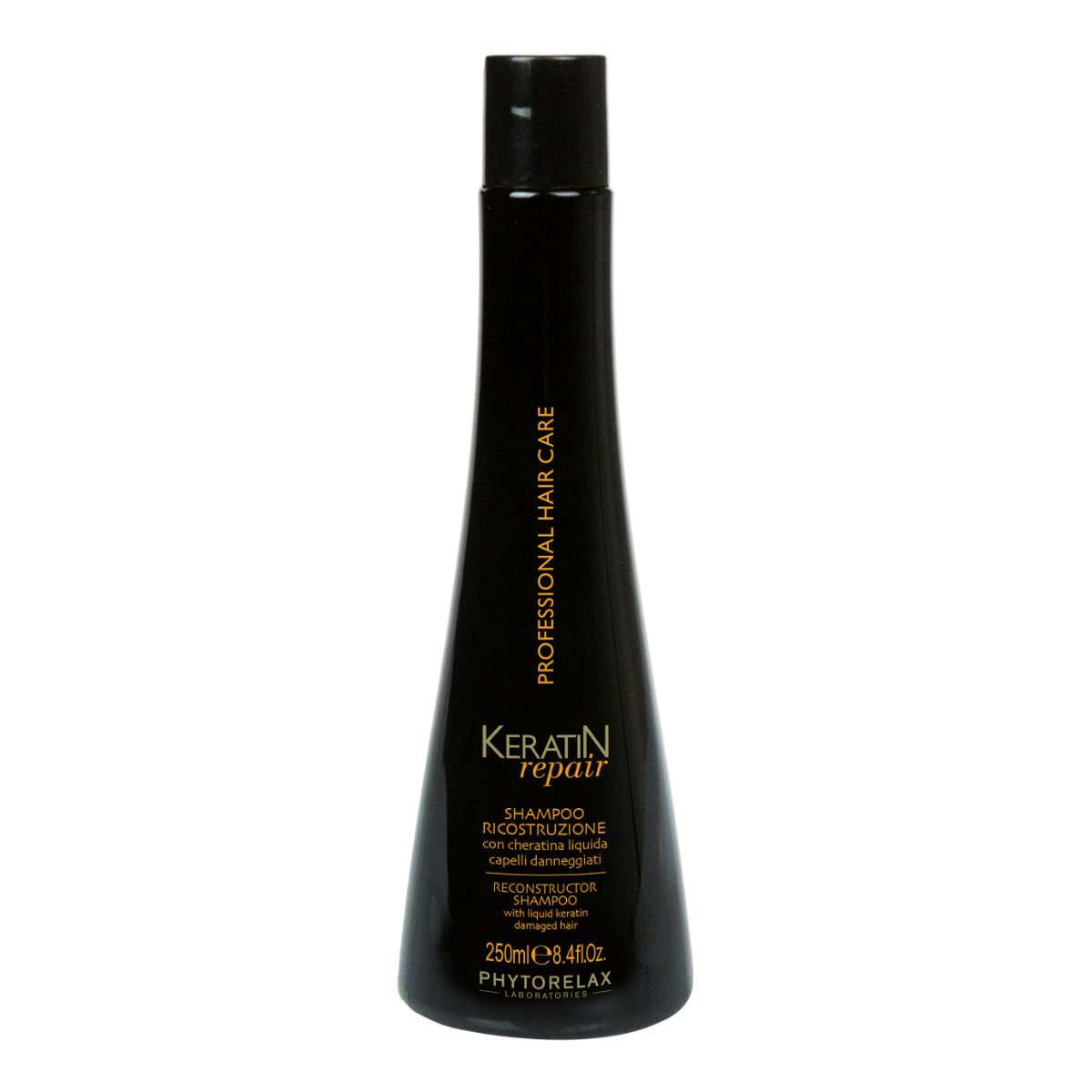 Sampon reconstructie intensa Phytorelax, 250ml, cu keratina hidrolizata si sericina, repara fibra capilara, fortifica parul deteriorat si reda stralucirea.