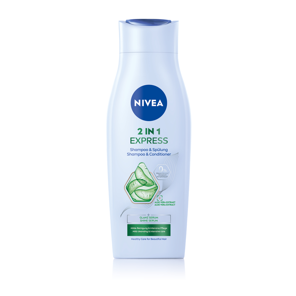 Profită reduceri și preț mic la Sampon si Balsam 2 in 1 cu ser pentru stralucire si extract de Aloe Vera Express, 400ml, Nivea, numai la Dr. Max.