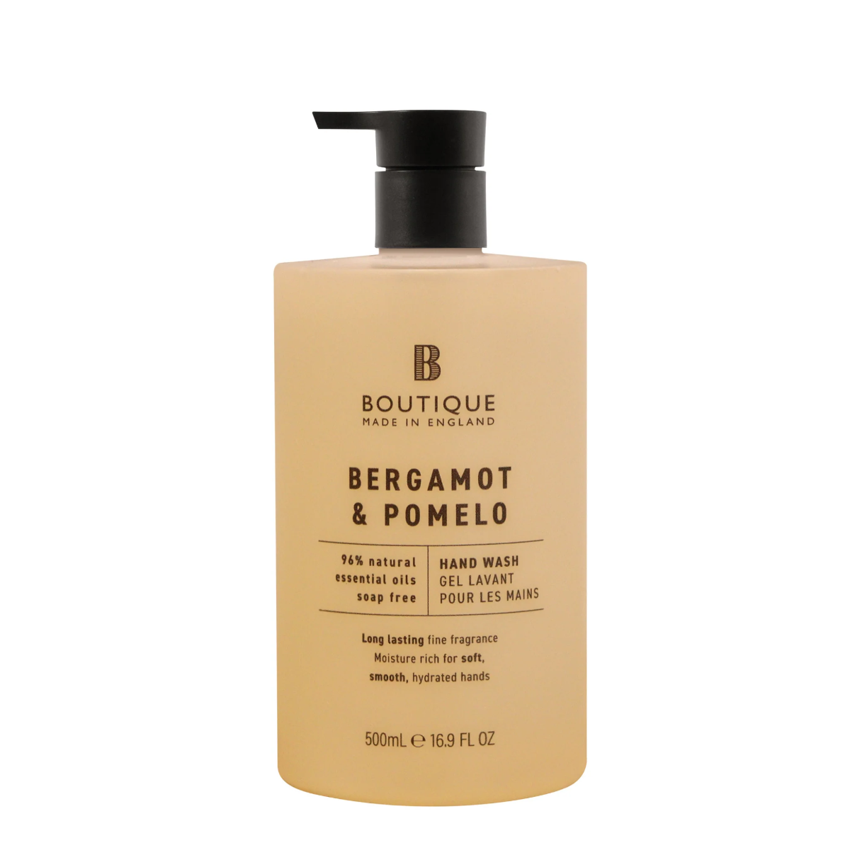 Sapunul lichid cu parfum de Bergamota & Pomelo Boutique curata delicat mainile, revigoreaza pielea si ofera o experienta senzoriala energizanta.