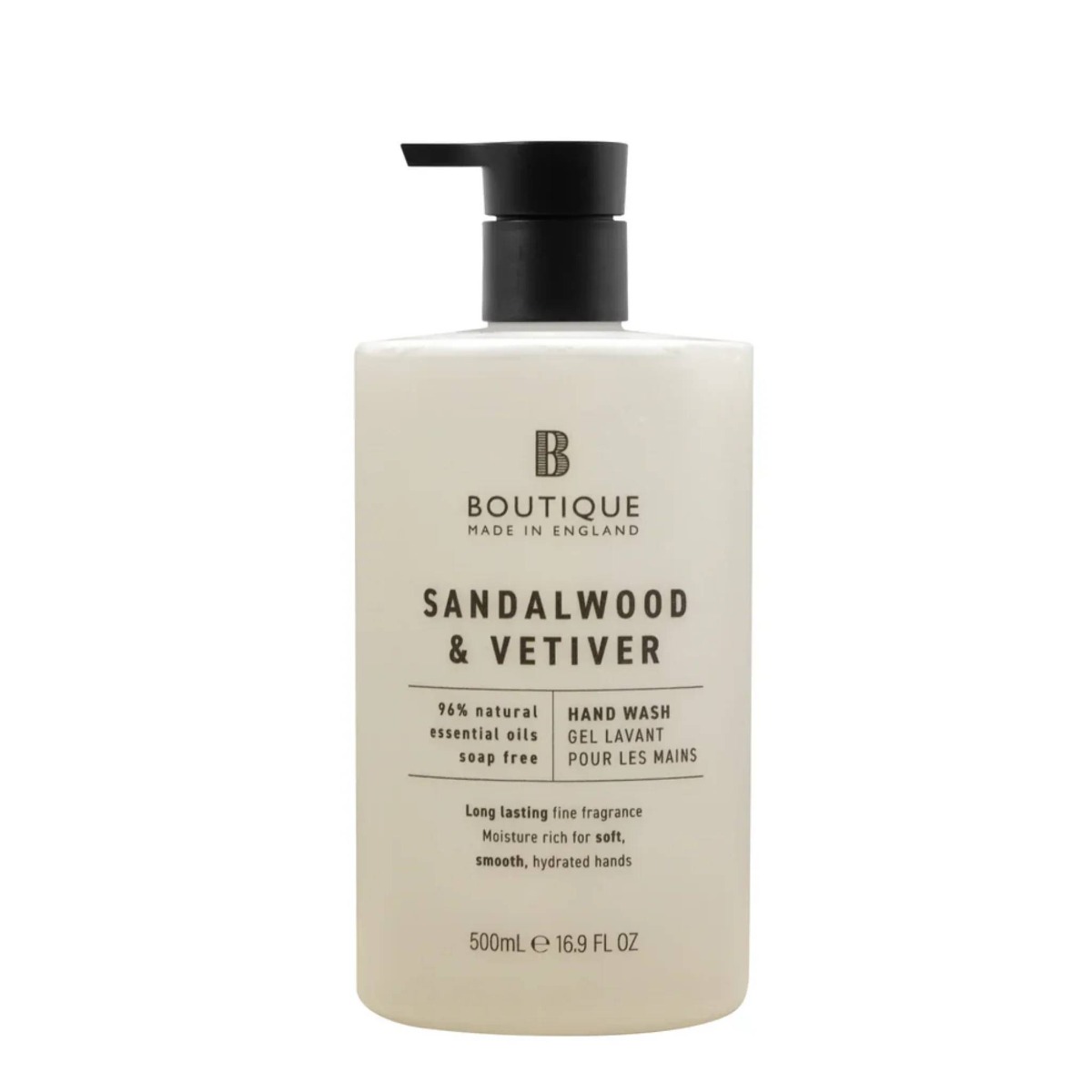 Sapun lichid cu parfum de Lemn de Santal & Vetiver, Boutique este un produs delicat pentru maini, care curata eficient, hidrateaza pielea si o invaluie intr-o aroma profunda si reconfortanta.