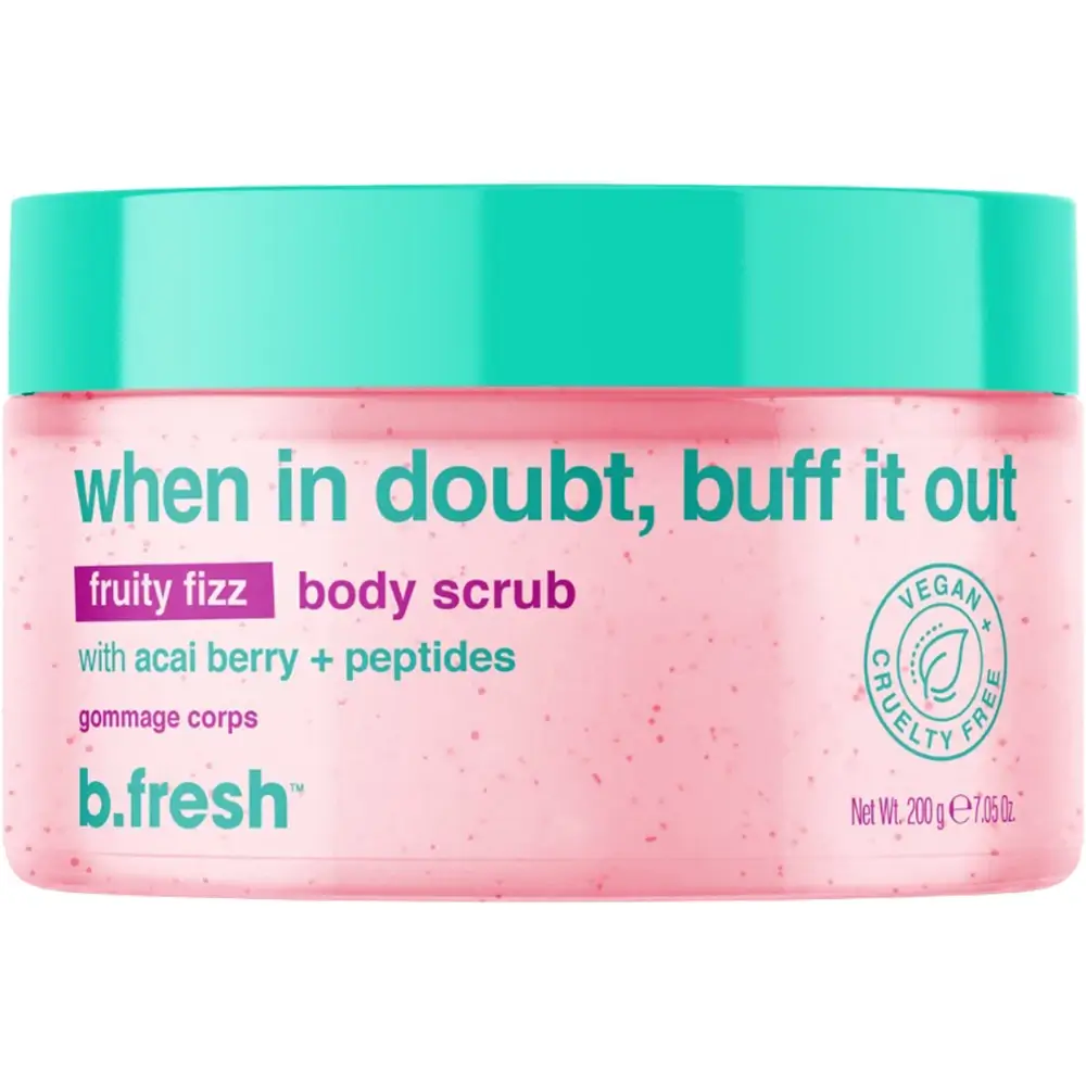 Scrubul de corp cu peptide si fructe Smooth & Glow B.fresh exfoliaza delicat, hidrateaza si catifeleaza pielea, cu enzime din fructe, peptide si extract antioxidant de Acai, pentru un aspect luminos si revigorat.
