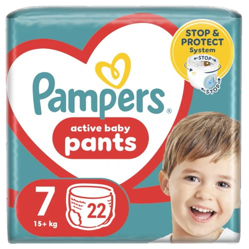 Profită reduceri și preț mic la  Scutece Active Baby Pants Marimea 7 pentru 17 kg+, 22 bucati, Pampers, numai la Dr. Max.