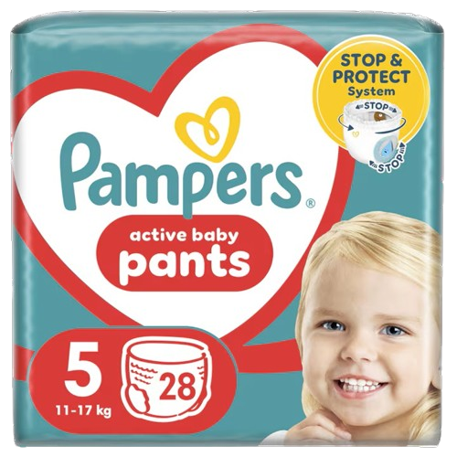 Profită reduceri și preț mic la Scutece-chilotel Active Baby Pants Marimea 5 pentru 12-17kg, 28 bucati, Pampers, numai la Dr. Max.