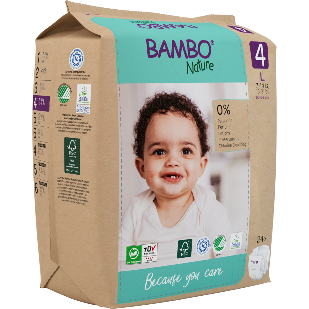 Scutece Eco Paper Bag Marimea Nr. 4 pentru 7-14 kg, 144 bucati, Bambo Nature sunt scutece ecologice, foarte absorbante si delicate, concepute pentru a proteja pielea sensibila a copilului si pentru a reduce impactul asupra mediului.