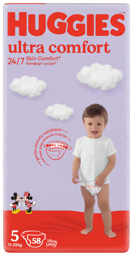 Scutece Ultra Confort Mega Marimea 5 pentru 11 – 25kg, 58 bucati, Huggies