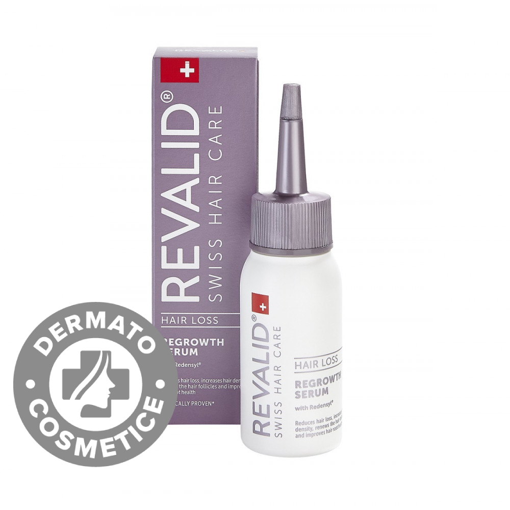 Revalid Regowth Serum contine ingredientul inovator patentat Redensyl care reactiveaza cresterea parului si reduce caderea acestuia.