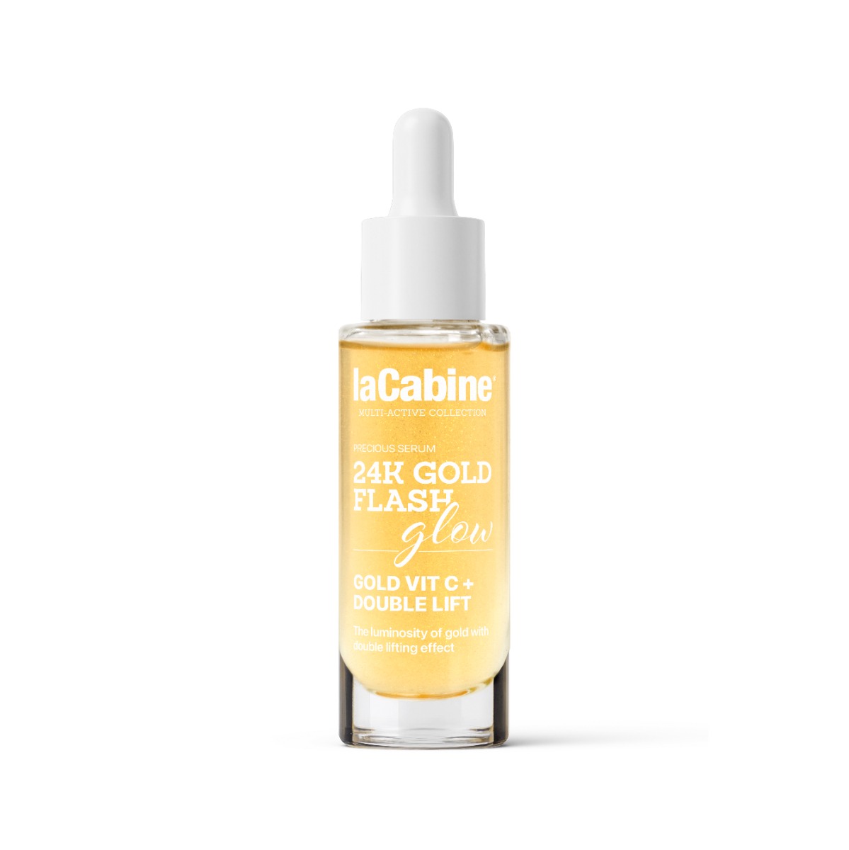 Serul pentru fata anti-imbatranire 24K Gold Flash Glow Multi-Active La Cabine are efect de luminozitate si lifting.