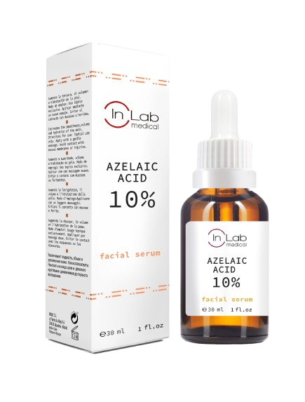 Ser concentrat cu 10% acid azelaic, InLab Medical – ser facial cu actiune purificatoare si uniformizanta, care regleaza excesul de sebum, matifiaza si imbunatateste aspectul pielii, lasand-o neteda si catifelata.