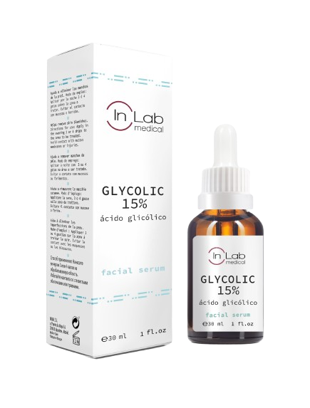 Ser pentru fata concentrat cu 15% acid glicolic, InLab Medical – ser exfoliant avansat cu A.H.A., care elimina celulele moarte, netezeste pielea si reactiveaza formarea de colagen si elastina, pentru un ten luminos, uniform si vizibil intinerit.
